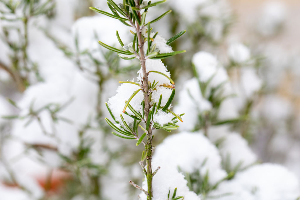 28. Januar … der Rosmarin im alten Obsthof, wo die Fotoküche zu Hause ist, blüht … eine kleine Rückschau auf den kalten Monat im Kräuterbeet.