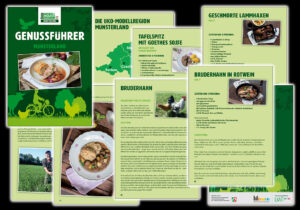 Gemeinsam haben Peter Schmidt, Carsten Engels von CE Grafik-Design und „Die Fotoküche“ die Genussführer in Team-Arbeit für den Biokreis Erzeugerring NRW & NDS e.V. umgesetzt. Peter Schmidt hat die Höfe besucht und die Texte geschrieben. Ira Schneider hat die mitgebrachten Rezepte ausprobiert, bearbeitet und fotografisch in Szene gesetzt. Und last but not least hat Carsten Engels ein handliches Format daraus gezaubert, in dem man gerne liest und sich von den Produkten und Rezepten inspirieren lässt.