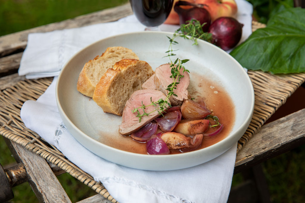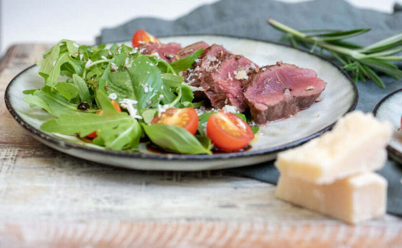 Aus dem Bergischen Land kommt die Tagliata vom Damwild (oben im Beitragsbild) und aus dem Münsterland (unten im Bild) das Schweinefilet mit Pfirsich-Balsamico-Sauce. Hier könnt Ihr die Genussführer als .pdf herunterladen. Viel Spaß beim Schmökern und Nachkochen!