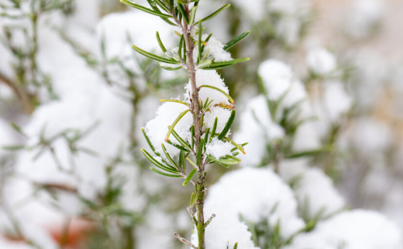 28. Januar … der Rosmarin im alten Obsthof, wo die Fotoküche zu Hause ist, blüht … eine kleine Rückschau auf den kalten Monat im Kräuterbeet.