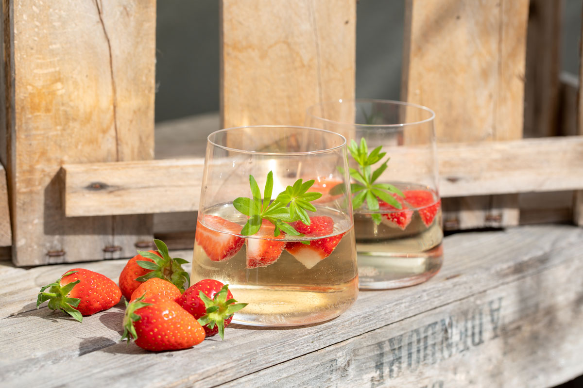 Waldmeister-Bowle mit Erdbeeren